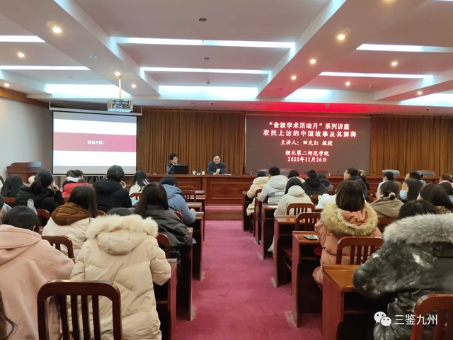 11月26日下午,马克思主义学院在行政楼五号会议室开展了以“农民上访的中国故事及其解释”为主题的学术讲座。此次讲座由贺海波副教授主持,华中师范大学中国农村研究院田先红教授、博士生导师主讲。