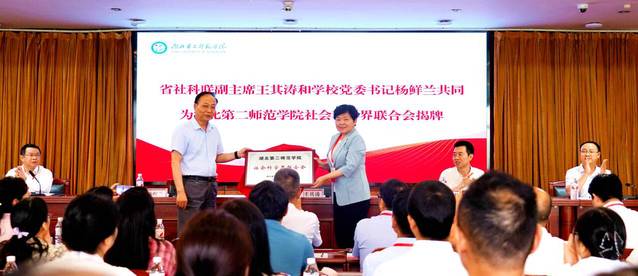 省社科联副主席王其涛和学校党委书记杨鲜兰共同为湖北第二师范学院社会科学界联合会揭牌20240626-1